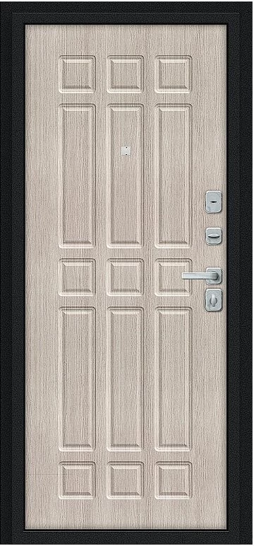 Надежная входная Дверь Браво Мило МФ/BChrome Букле черное/Cappuccino Melinga премиум класса по цене 34 375 руб. Большая толщина стали защитит от проникновения в ваш дом, квартиру или коттедж. Используется очень качественная фурнитура: замки, цилиндры, ручки, защелки. Покрытие и отделка двери изготовлено под внимательным контролем производителя. Дверь имеет долгий срок службы и гарантию.